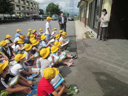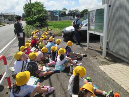 社会科の学習が始まってから初めて、学校の外にでかけました。学校のまわりにある施設に行き、施設の方にインタビューをしました。