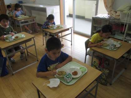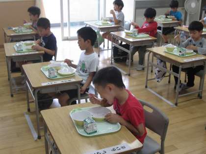 本日の献立は、とんかつ、かきたまスープ、メロンゼリーです。配膳に配慮した給食の初日でしたが、トラブルのため急遽献立が変わり、ご迷惑をお掛けしました。※本日保護者宛文書を配布しました。