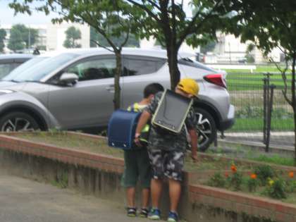 25日(木)は、蒸し暑い朝です。マスクを外している子には、「学校に入ったら着用するよ」と声をかけていました。本日から緊急スクール・サポート・スタッフが配属されます。