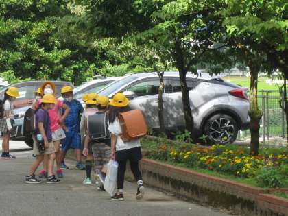 2日(木)、昨日のいちょうタイムは雨でグラウンドで遊べませんでしたが、今日は大丈夫そうです。学校田のイネ、予備用の野菜は、こんなに大きくなっています。