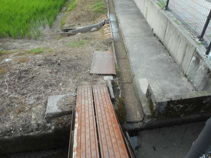 7月9日(木)、最近は雨が多く、田んぼの様子が心配でしたがイネはぐんぐん成長しているようです。下校時に田んぼを見ていた子供たちが「用水の水が無い!」と驚き、田んぼに水が入らないことを不安に感じていました。なぜ、雨が続いていたのに用水の水がいつもより減っているのでしょう?