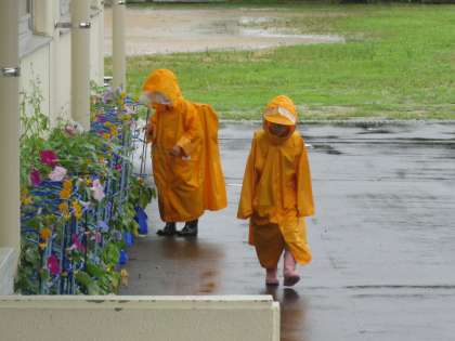 10日(金)は、大雨も心配になる朝です。朝も校外学習へ出かけた3年生が「昨日、楽しかった!」と言っていて、「奇跡的な天候だったな」と思っていました。この雨でもアサガオを見に行く1年生に感心しています。