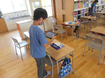 7月10日(金)、図工の時間に「形が動く絵が動く」という学習を始めました。身近な物を使ってアニメーションのように写真を撮っていきます。実際に友達と撮ってみたり、机の上で物を動かしてみたりしました。どのような作品になるでしょうか。