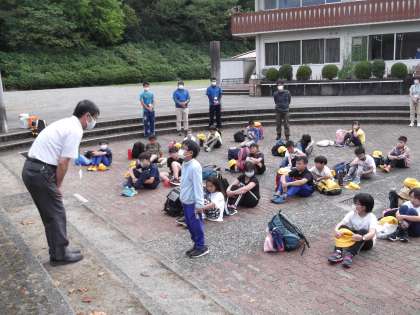校外学習8(4年生) 公開日 2020/08/31 更新日 2020/08/31 4年生 午後の活動も終わり、退所式の様子です。一日お世話になった呉羽青少年自然の家の職員の方々に感謝の気持ちを表しました。