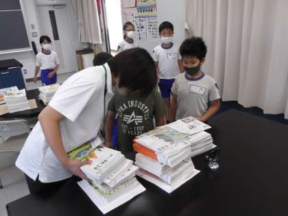 2学期が始まって3週目となりますが、今日、9月1日が後期教科書の配付日となっています。(6年生は、後期教科書はありません)子供たちは新しい教科書に興味津々の様子でした。ご家庭でも、教科書の確認、記名、使用するまでの保管等、ご協力よろしくお願いします。