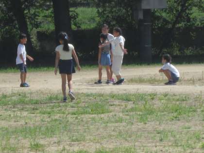 真っ赤な太陽の下、太田っ子の元気に外遊びを楽しむ姿がありました。2年生は、中庭でこおりおにをするのがお気に入りです。グラウンドでサッカーを楽しむ子供たち。そうかと思うと、3年生が担任の先生とリレーの練習です。