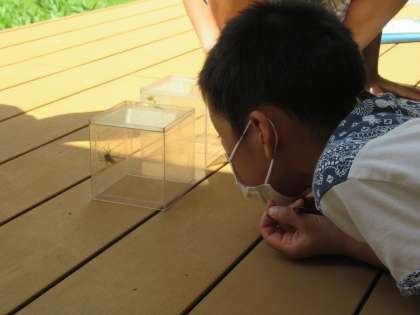 9月9日(水)、生活科の学習で中庭に行き、秋の虫観察を行いました。色や体のつくりをじっくり観察していました。「飼ってみたい!」「どんなものを食べるのかな?」等、どの子も夢中になって学習しています。