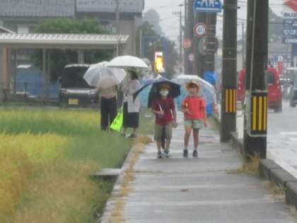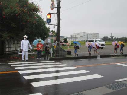 朝から小雨の25日(金)です。今朝も交通指導員の方、PTAの方、教職員が雨の中を立って交通指導を行っていました。9月の「安全の日」でもあるので、熊対応に加えて集団登校の仕方についても振り返ります。