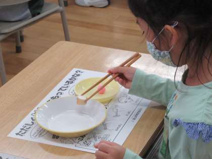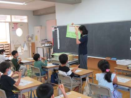 9月29日(火)、4時間目に栄養教諭の廣田先生から、「はしの持ち方」について授業していただきました。鉛筆のように持ったり、上のはしだけを動かしたりすると、きれいにはしが使えることを教えていただきました。その後の給食では、いつも以上に持ち方に気をつけて食べてました。正しい持ち方で食事が出来るように頑張って直していきましょうね。