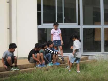 心地よい太陽の光に誘われて、たくさんの子供たちが外で遊んでいました。中庭プロジェクトを楽しみにしているのは、2年生です。鬼ごっこに疲れて、芝生で寝転んでいる子たちもいました。タイム後半には、1年生が虫探し、3年生も鬼ごっこをやりながら、笑顔いっぱいでした。