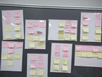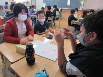 10月16日(金)、今日の音楽では学習発表会の振り返りをしました。自分たちの発表をビデオで観賞しました。そして、付箋を使って自分やみんなのよかったところや今後の目標などについて書き、グループで発表し合いました。友達の話に、共感したり、考えたりする時間はよい雰囲気だったと思います。