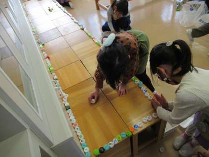 11月5日(木)、図工で「ならべてならべて」の学習をしました。箱やペットボトルのキャップなど、たくさんの材料を使いながら思いのままにならべていました。友達と協力しながら、どんどんならべていく楽しさや面白さを味わいながら活動することができました。