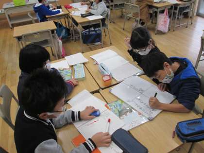 国語で「はんで意見をまとめよう」の学習をしました。「みんな(3−1、先生、給食室の方々)が気もちよく給食を片付けられるにはどうすればよいか」という議題で、班で何度も話し合いました。子供たちは今回の学習を通して、司会やタイムキーパーの役割を決めることで話し合いが円滑に進むことや、記録の仕方を工夫することのよさを実感したようです。今後のグループ活動に生かしていきたいですね。