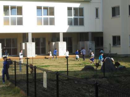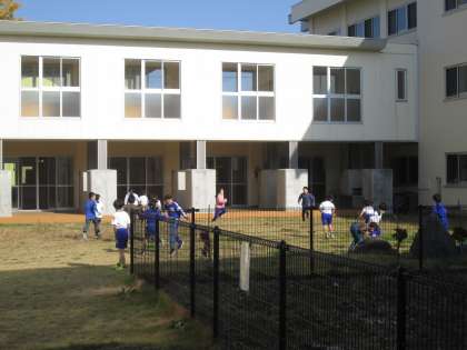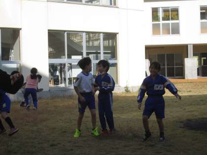 この時期としては珍しい好天の下、久しぶりの「いちょうタイム」を行いました。中庭では、恒例となった2年生と4年生の「警察と泥棒」鬼ごっこ対決です。4年生が体育館使用時間となると、今度はやってきた3年生と2年生の対決が始まりました。人数が多いとはいえ、どんどん上の学年に勝負を挑む2年生です。