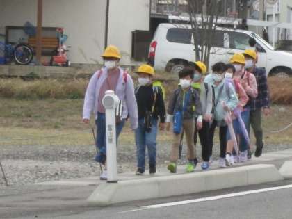 風が強く安全帽子をランドセルに入れて登校する子が多かった20日(金)の朝です。