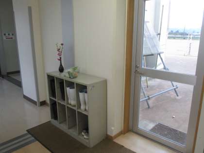 なお、真ん中の写真は「2、3、5年出口」(体育館に向かう通路を右に回り、家庭科室横を通って給食室前に行く)のひとつ、右の写真は「6年出口」(理科室横階段手前にありグラウンドへ出ます)です。大変ご不便をお掛けしますが、よろしくお願いいたします。