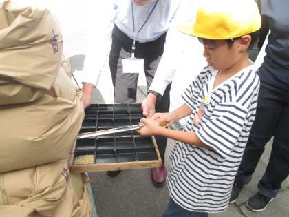 出荷する前のお米の等級を見るために、米の袋から米を取り出す作業をさせてもらったり、乾燥した米を保管しておく倉庫の中に入らせていただいたりと、貴重な体験ができました。