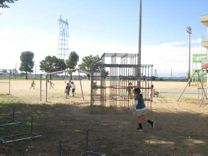 1年生 たのしいな 公開日 2024/10/17 更新日 2024/10/17 1年生 ジャングルジムにのっている子供たちの写真です。雲をみて「くじらぐもみたい」「ライオンの形だよ」など、話がはずみます。