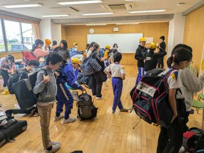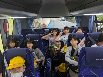 出発式を終えた後、バスに乗って立山青少年自然の家に向かいます。