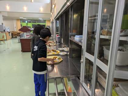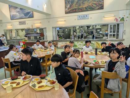 午前中の活動が終わり、昼食の時間です。 みんな元気に食べています。