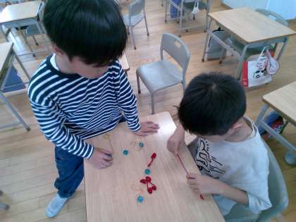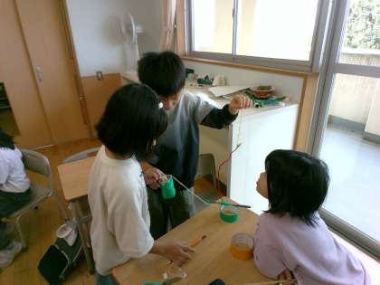 作ったおもちゃで遊んだり、友達に遊んでもらったりして改良を重ねています。