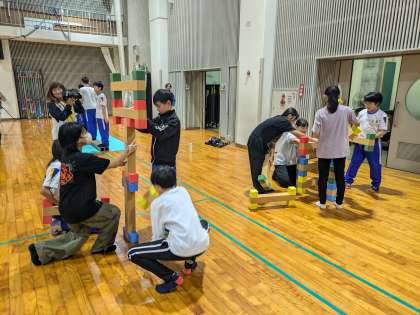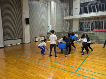 濃霧のため、キャンプファイヤーは中止となりましたが、プレイホールで「遊びリンピック」を行いました。