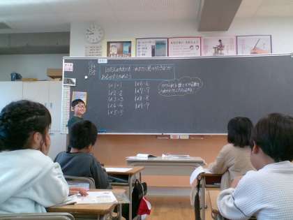いよいよ九九の学習も終盤です。今日は、1のだんの九九を学習しました。これまで他のだんで学習したきまりが、1のだんにも使えるかを考えました。