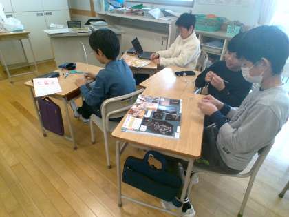 今日は、3種類の太さのはり金を使ってどんなことができるか確かめながら作品作りをしています。