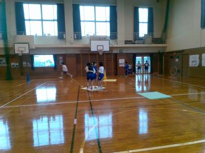 体育科では、ベースボール型の授業をしています。少しずつ打つことに慣れていきましょう。試しのゲームでは、さっそくの守備位置や打つ強さを考える姿が見られました。