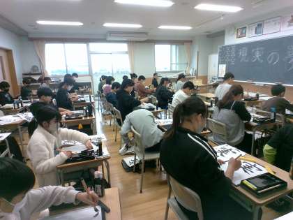 書き初め「夢の実現」の練習をはじめました。線の太さや字の形をよく見て、一人一人の課題に合わせて練習しています。