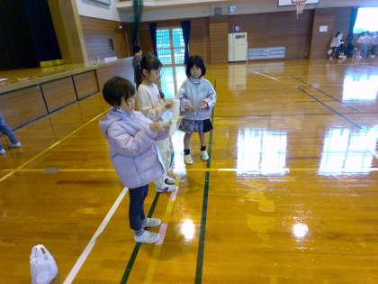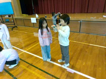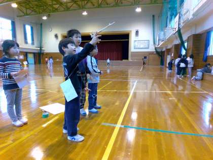 子供たちは2学期に入ってからこつこつと作ってきた動くおもちゃを、1年生に楽しんでもらうために、おもちゃパーティーを企画しました。