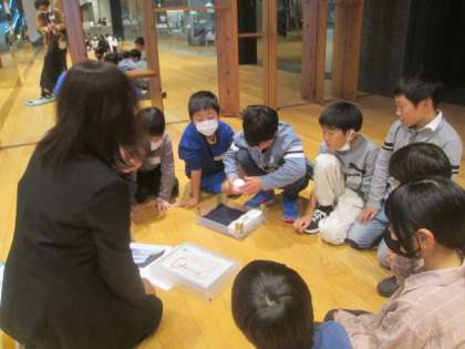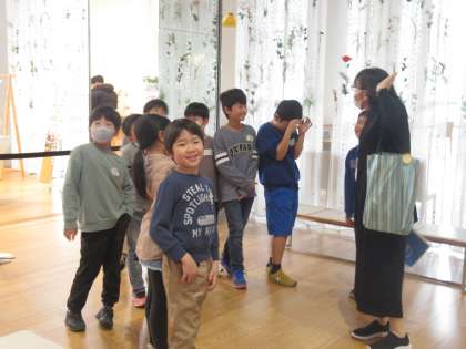 子供たちは、自分のお気に入りの作品を見つけ、作品のよさを伝え合っていました。