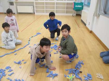 最初は、作品を個々につくっていましたが、そのうち、グループやペアになりながら、作品をつくる姿が見られました。