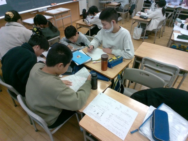 算数科では、自分で選んだコースに合わせて学習を進めています。難しい問題に挑戦したり、プリントを活用して学習を進めたりする様子が見られます。