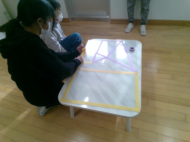 卒業制作「橋の絵」では、自分が描く場所にテープを貼りました。