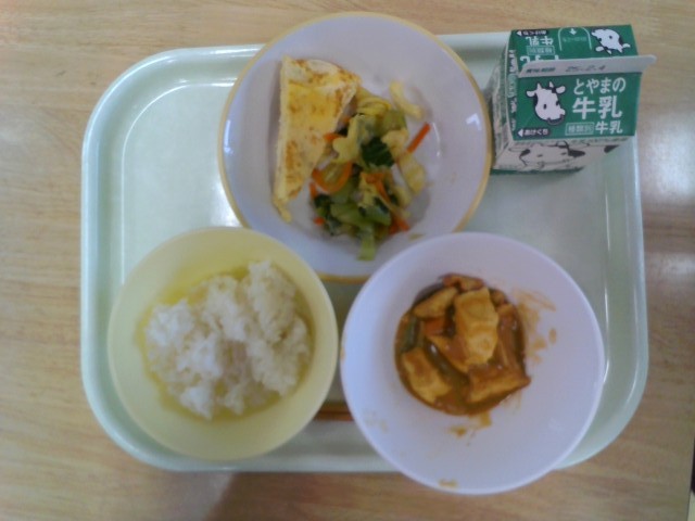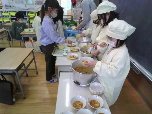 今週から、給食週間が始まりました。今日の献立は、「さんすうこんだて」です。黄金比のやさいいためなど、算数の学習とからめて考えてあります。また、お昼の放送には栄養士の先生に来ていただきインタビューも行いました。あすは、「こくごこんだて」あさっては、「りかこんだて」へと続きます。