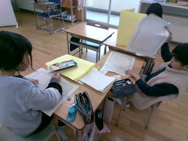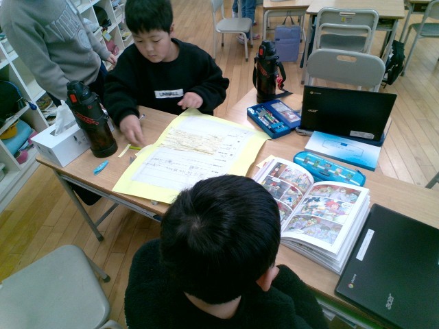 構成メモを終え、物語作成開始!今日は「修飾語と接続詞を意識して使う」という課題に取り組みました。