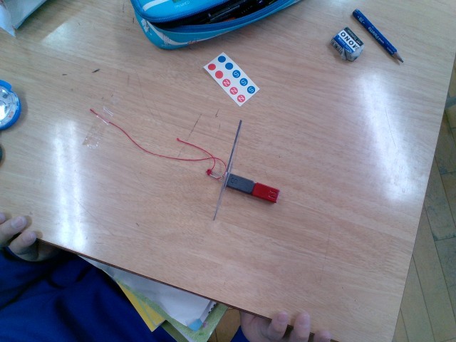 じしゃくと鉄でできた物を使った実験をしました。