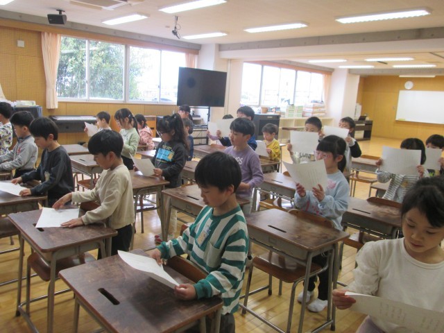 音楽室で校歌を歌いました 公開日 2025/04/16 更新日 2025/04/16 1年生 1時間目、1年生は音楽の学習をしました。校歌を元気に歌ったり、曲を聞いて曲名を当てたりして楽しく学習に取り組んでいました。