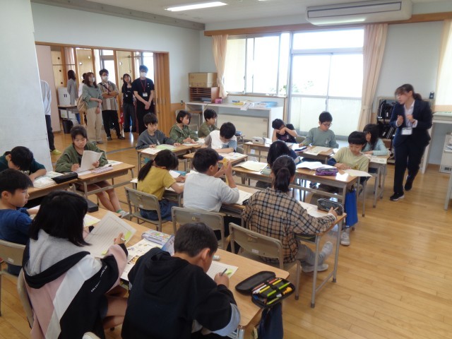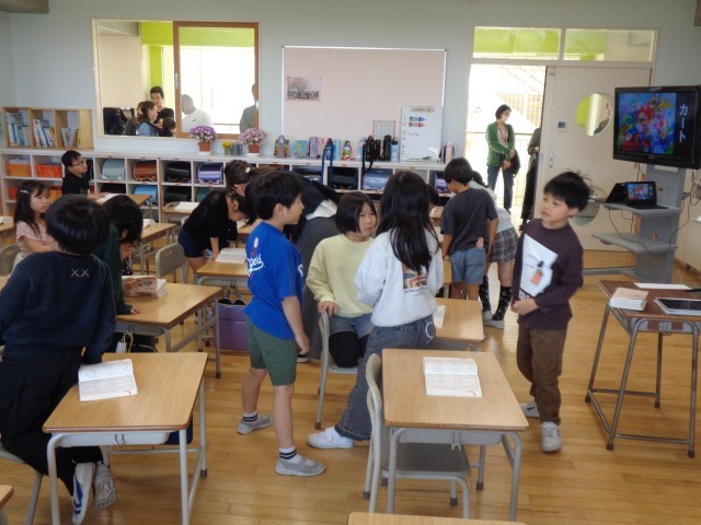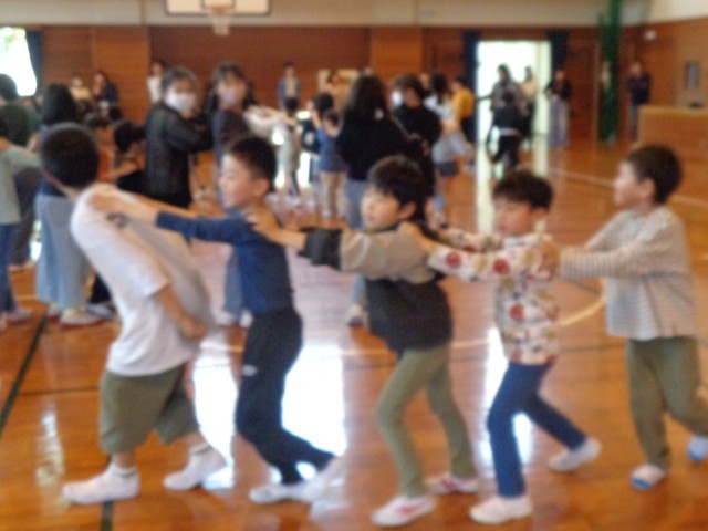 学級懇談会の時間には、5年生が中心となって企画したレクリエーションを楽しみました。