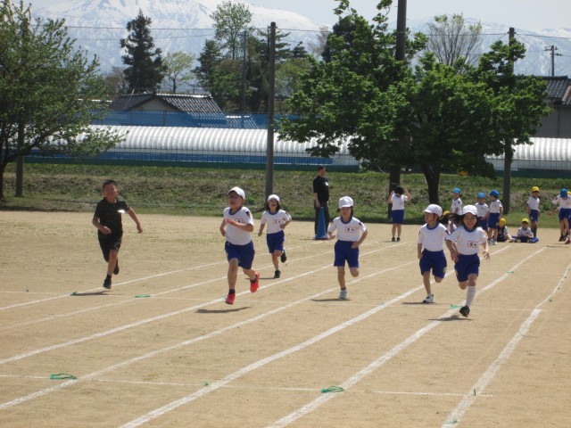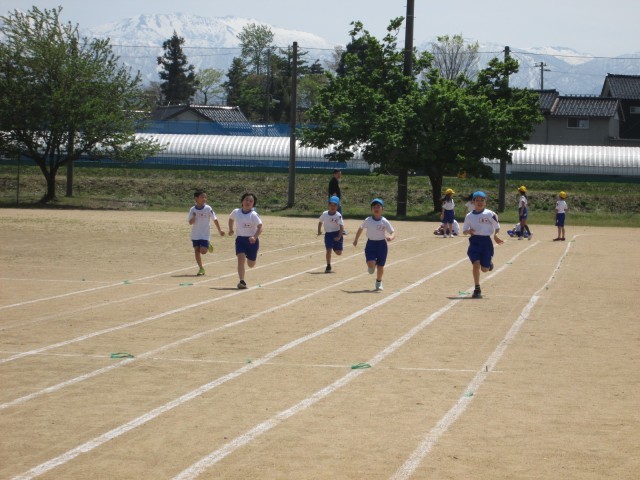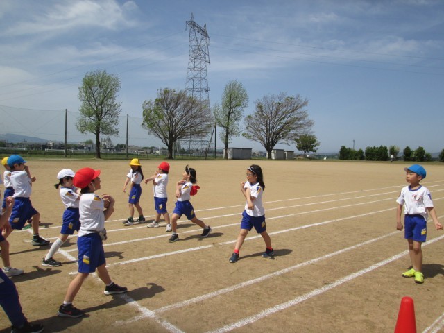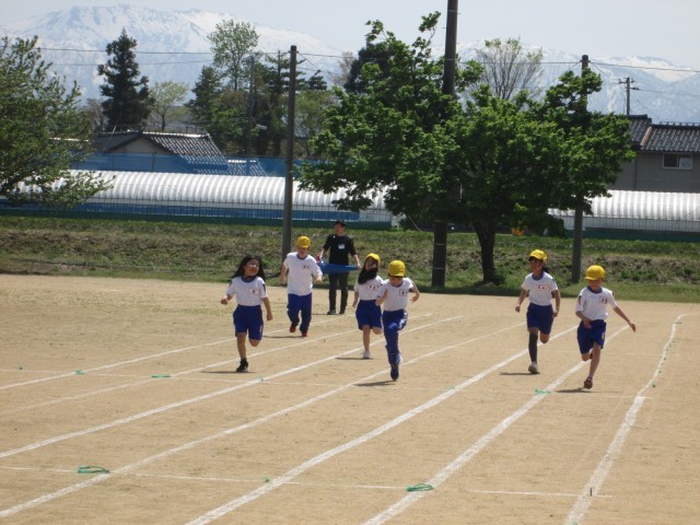 今日も晴天のもと、50m走を測定しました。準備運動では、先週決めた運動係の子どもたちが中心になって自分たちで進めています。今日は、追い風もあり、この間よりも1秒近く早まった子もいました。
