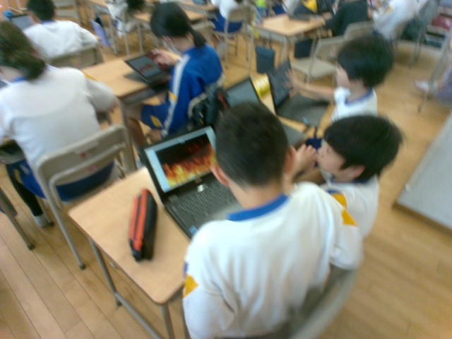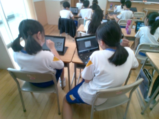 5年生では、運動会スローガンに合うデザインを考えています。マスコットキャラクターについて進んで6年生に質問したり、自分たちのデザインを紹介したりする様子にいいね!