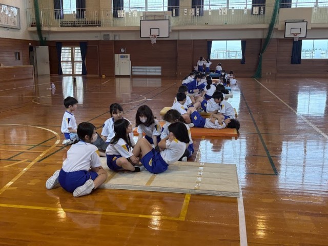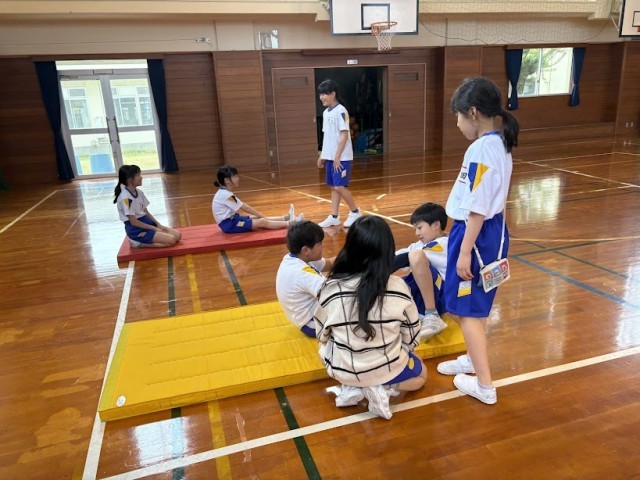 4・5年生 合同体育 公開日 2025/04/24 更新日 2025/04/24 5年生 4・5年生での合同体育の後半は、スポーツテストのやり方を5年生から4年生に伝えました。たのしみながら活動する様子がいいね!