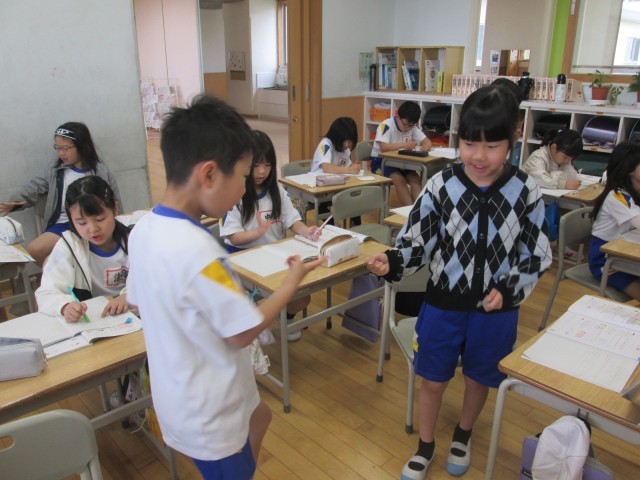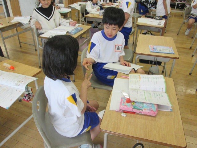 算数では、じゃんけんゲームをして、0のかけ算について学びました。