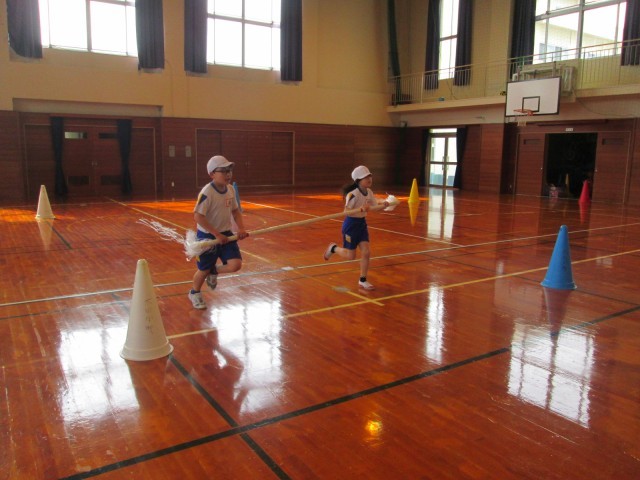 今年の運動会では、4年生と一緒に台風の目に挑戦します。今日は3年生だけで、競技を体験してみました。1時間の中でも、どうやったら速くつなぐことができるかを考えて、取り組む様子が見られました。