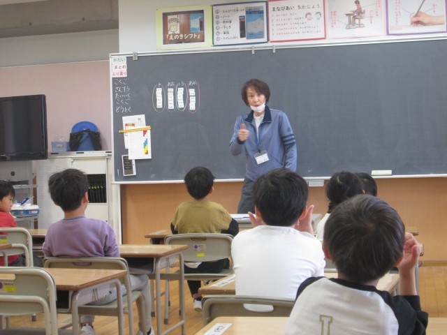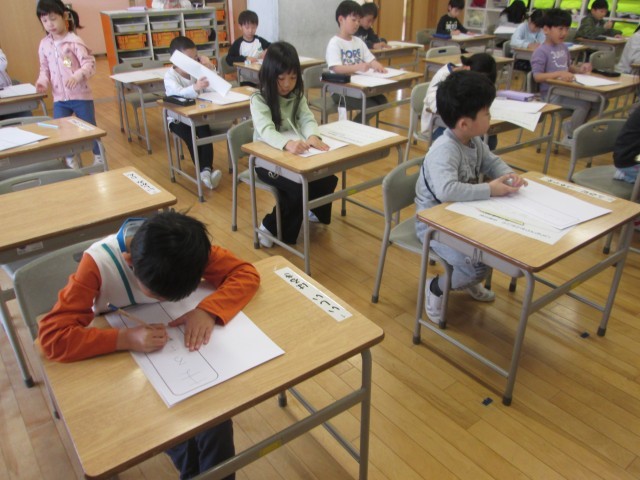 校長先生と楽しくお話しながら、校長先生の名前を書きました。