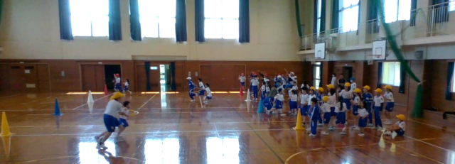 チャレンジフェスティバル(運動会)に向けて「チャレフェスタイム」が始まりました。今日は「ドキドキフラフープリレー」「ドレミチャレンジ」をしました。