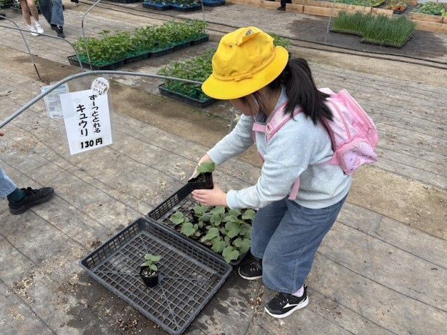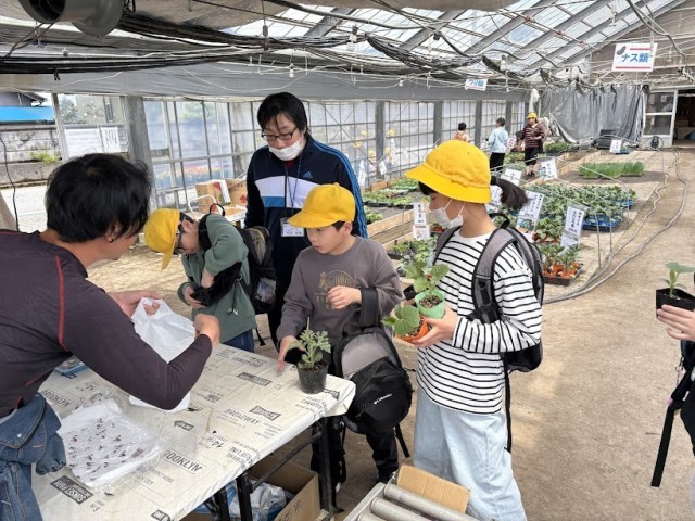 2年生と5年生で、校区内の農園に育てる野菜の苗を買いに行きました。どの苗にしようか真剣に悩む様子が見られました。また、5年生は地域の方に教わりながら苗を植えました。