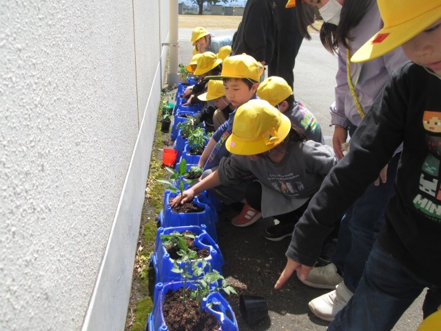 午後から、野菜の苗を鉢に植えかえました。土をほったり、水をやったりする活動が、とてもスムーズでした。