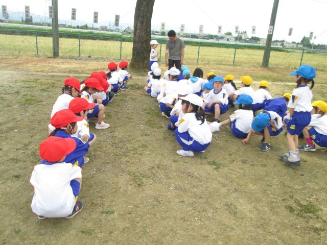 1年生、2年生合同で、チャレンジフェスティバル(運動会)に向けて、「玉入れ」のかけ足の仕方や円をつくるところなどを練習しました。がんばっています。